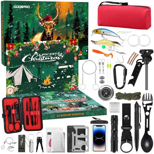 MH MYLUNE HOME Tactical Survival Calendar - 24 Days Xmas Countdown Advent with Waist Pack, Fire Bellows & Poncho | Premium Survival Gear Gift for Outdoor Men, Camping, Hunting, Adventure