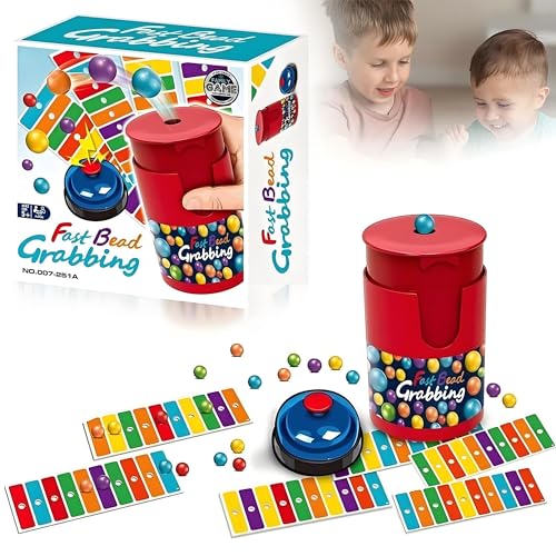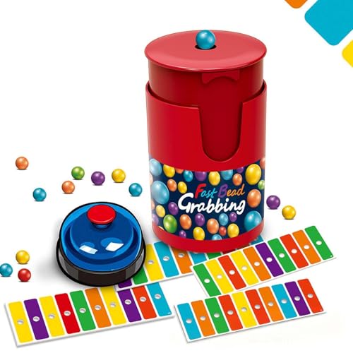 Fast Bead Grabbing Game, New Match Color Bingo Board Game Set, 90 Beads & 6 Code Cards, 1 Bell & Bead Can, Hand Eye Coordination Training for Group Party and Family 2-4 Player, Great Xmas Gift