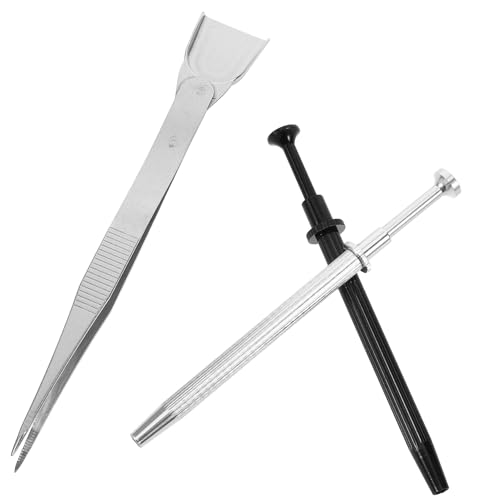 Mesee 2 Pcs Diamond Stone Tweezer Set, Stainless Steel Slide Locking Precision Tweezers Multipurpose Straight and Curved Fine Pointed Tip Tweezers for Gem and Jewelry DIY Craft Making