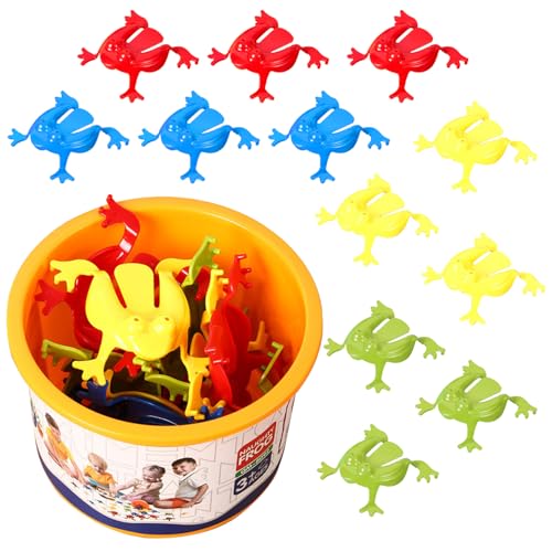 Toddmomy Plastic Frog Jumping Toy Finger Pressing 12pcs Bouncing Frog Toy Game with Bucket for Kids Birthday Party
