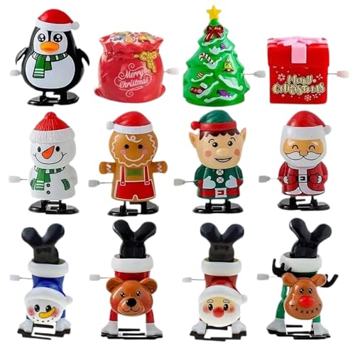 12PCS Christmas Wind Up Toy, Christmas Wind Up Jumping Toys Bulk, Christma Tree Santa Claus Clockwork Chain Toys, Bag Classroom for Kids Prizes
