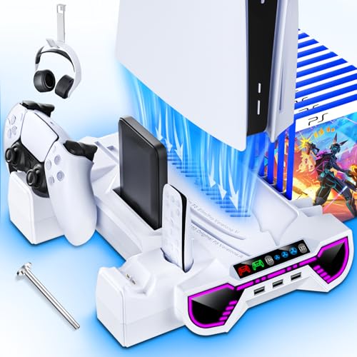 NANANINO PS5 Slim Cooling Fans, Cooling Fan for PlayStation 5 Slim Disc Edition/Digital Edition with RGB Lighting and USB 3.0 Port