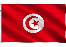 Tunisia Flag 3 X 5 Ft,Canvas Header and Double Stitched - Brass Grommets for Easy Display,Vivid Color and UV Fade Resistant Outdoor Tunisian Flags 90x150Cm