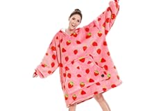 THREE POODLE Wearable Blanket Hoodie, Oversized Sherpa Sweatshirt Blanket for Adults Women Men, Warm Cozy Strawberry Hooded Blanket, Gifts for Mom Girlfriend