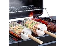 ivtivfu Rolling Grill Basket, Removable Wooden Handle, 304 Stainless Steel, Nesting Grilling Tools, Smoker BBQ Accessories for Vegetable, Outdoor Cooking Camping, Birthday Gifts for Men Dad Husband