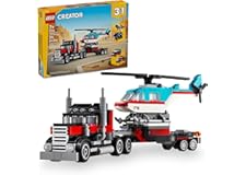 LEGO Creator 3 in 1 Flatbed Truck with Helicopter Toy, Transforms from Flatbed Truck Toy to Propeller Plane to Hot Rod and SUV Car Toys, Gift Idea for Boys and Girls Ages 7 Years Old and Up, 31146