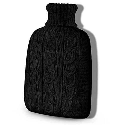 RUINIPOT Hot Water Bottle Cover Only Soft Hot Water Bottle Cover Removable Cover Bottle Cover Sleeves for Women Kids Silicone Hot Water Bag, Only Cover (Black,Classic Style)
