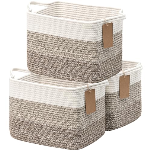 NaturalCozy Storage Cubes 9鈥漻9鈥漻7鈥滳otton Rope Woven Baskets for Organizing 3-Pack | 9 Inch Cube Storage Bin | Small Basket for Shelf Nursery, Pantry, Decorative Plant, Bathroom Closet, Toy Gift
