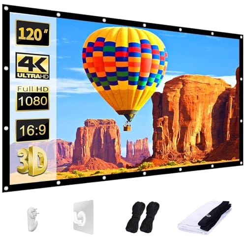 100 inch 16:9 HD Projector Screen Anti-Crease Foldable Portable Indoor and Outdoor Projector Movies Screen, Support Front and Rear Projection