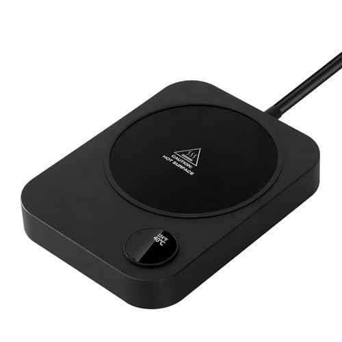 Misby Mug Warmer, 50W Large Heating Panel Coffee Mug Warmer with 6-Temp Settings, 8H Auto Shut-Off, 12H Timer, Ultra-Thin Design, Coffee Cup Warmer for Desk, Ideal for Home, Office, Travel (Black)