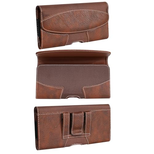 Phone Holster for iPhone and Samsung - PU Leather Cell Phones Belt Case Holder with Clip for iPhone 17 17 Pro, 16 16e 16 Pro, 15 15 Pro, 14 14 Pro, 13 13 Pro, Galaxy S25 S24 S23 S22 S21 S20 (S)