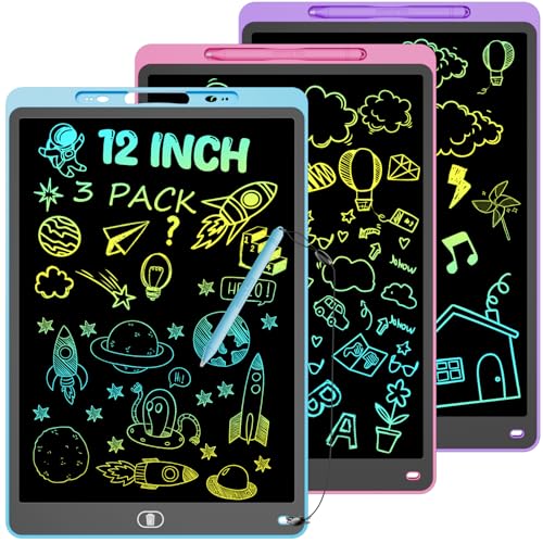 12 Inch LCD Writing Tablet,[2 Pack] Electight Colorful Drawing Board, Eye Protection Doodle Scribbler Pad, with Lock & Delete FUNC, Toys & Gifts for Kids & Adults at Home, School - Blue & Pink