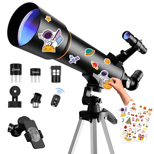 MATALDE Telescope for Kids, 70mm Aperture (15X-150X) AZ Mount Telescopes for Astronomy Beginners, Portable Refractor Telescope with Tripod, Phone Adapter and Wireless Remote, Space Gray