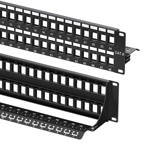 VCE 24 Port Keystone Patch Panel 1U 19-Inch, with 25-Pack UL-Listed UTP CAT6 Keystone Coupler, 1 Gbps, Compatible with CAT5/CAT5E/CAT6