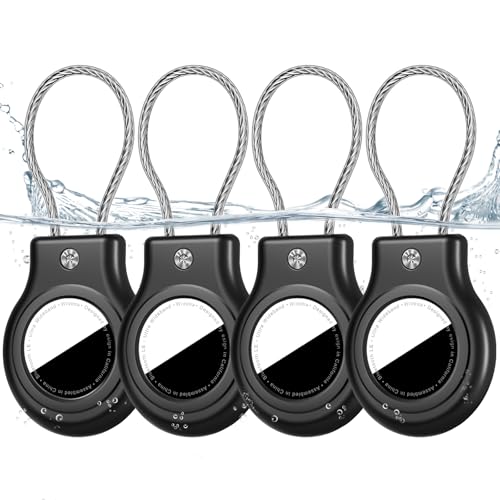 UNBREAKcable Holder for Apple AirTag - 4 Pack [Fit Tightly Design] [Easy to Install] [Hold Air Tag Securely] Waterproof TPU Shell Protective Case with All Metal Keychain Key Ring Clip