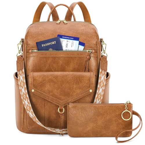 Shrrie Backpack Purse for Women Leather Backpack Fashion Designer Travel Backpack Convertible Shoulder Bag with Wristlet