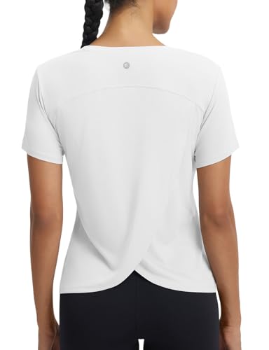 icyzone Yoga Shirts for Women Open Back - Workout Tops Short Sleeves t Shirts Loose fit