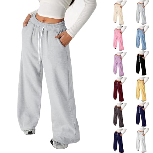 Cute Pants for Teen Girls Baggy High Waist Wide Leg Sweatpants Y2K Preppy Casual Joggers Sweat Pants for Girls 10-12
