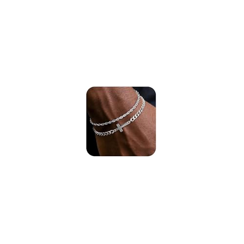 Speroto Mens Bracelet, Adjustable Mens Leather Bracelet with Stainless Steel Magnetic Clasp, Multi-Layer Braided Genuine Leather Bracelet for Men and Women