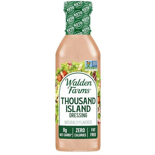 Walden Farms Thousand Island Dressing, 12 oz. Bottle, Fresh and Delicious Salad Topping, Non-GMO, Sugar Free 0g Net Carbs Condiment, Smooth and Creamy