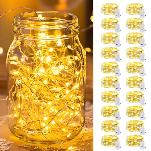 [12 Pack & 3 Modes] Fairy Lights Battery Powered 7FT 20LED Twinkle Lights Battery Mini Lights Small LED String Lights Waterproof Silver Wire for Indoor Mason Jar DIY Wedding Christmas Decor,Warm White