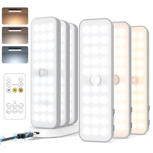 EZVALO 6-Pack Under Cabinet Lighting with Charging Station, Rechargeable Motion Sensor Lights, 3 Color Temps, Dimmable 62 LED Wireless Motion Activated Cabinet Lights with Remote for Kitchen,Pantry
