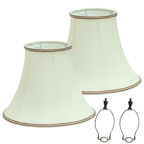 SIXZOONM White Lamp Shades Set of 2,10x12x9 ''(Medium Size),Drum Lampshades with 8 ''Harp,Fabric Shade Replacement for Table and Floor Lamp,Linen Cloth Cover,Assembly Required (KD-9-White)