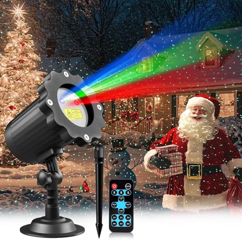 Christmas Projector Lights Outdoor, Laser Lights Outdoor with 8 Christmas Patterns, 2 Colors, Remote & Timer, Waterproof Light Projector for Indoor Outdoor Holiday Decoration