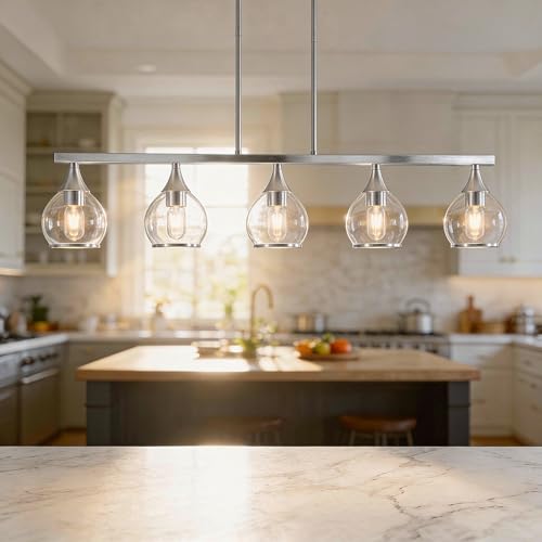 Siittoo Modern Crystal Pendant Light, 45W Dimmable LED Black Pendant Light Fixture with Bubbles, 5-Light LED Chandelier Hanging Pendant Lighting for Kitchen Island Dining Room Bar Area