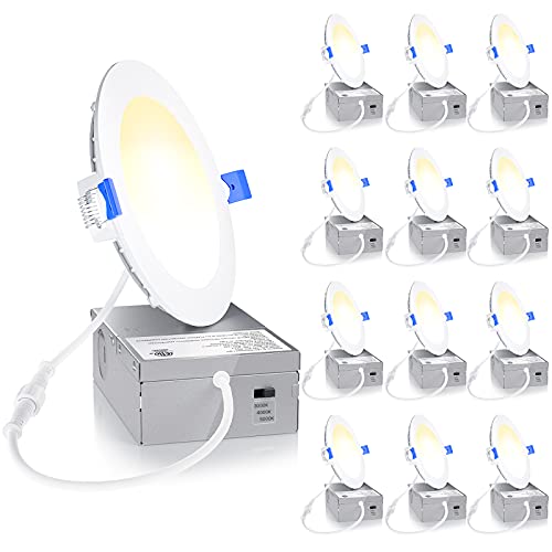 Amico 12 Pack 4 Inch 5CCT LED Recessed Slim Pot Light with Junction Box, 2700K/3000K/3500K/4000K/5000K Selectable, 11W Eqv 70W, Dimmable IC-Rated Ceiling Lighting, 800LM High Brightness - ETL