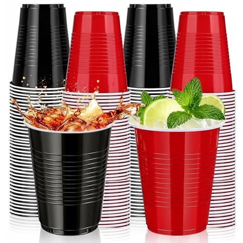 100 Pack Plastic Drinking Cups for Party, 16 Oz Black Disposable Cups Stackable Water Beer Beverage Soda Cups for Halloween Birthday Picnics Barbecues