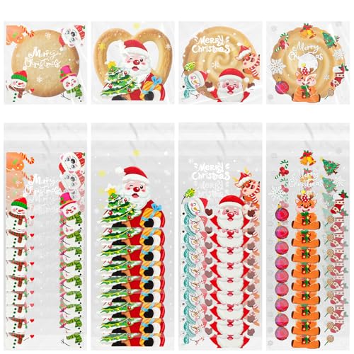 CHRORINE 180Pcs Halloween Candy Bag 6 Styles Self Adhesive Cookie Candy Cellophane Bags for Halloween Party Supplies Chocolate Snacks Packin