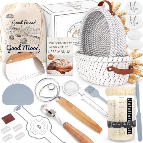 VIMERPA Sourdough Bread Starter Kit, Banneton Proofing Basket with Sourdough Starter Jar for Beginners, Bread Making Kit for Home and Kitchen, Baking Supplies, Making Tools