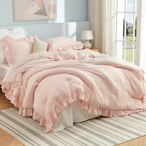 Basic Beyond Twin Comforter Set - Pink Twin Comforter Set, Reversible Twin Bed Comforter Set for All Seasons, Baby Pink/Grey, 1 Comforter (66"x92") and 1 Pillow Sham (20"x26"+2")