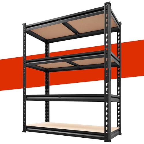 IRIS Storage Shelves, 4-Tier Plastic Shelving Unit, Medium Storage Shelf Organizer for Garage, Laundry, Bathroom & Home, 200 lb Capacity, Black