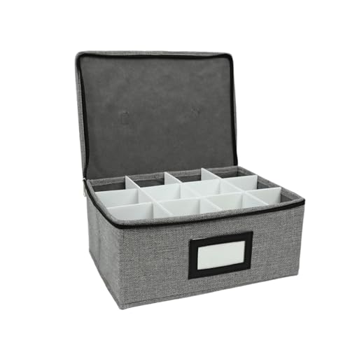 Stemware Storage Cases, Quilted Glassware Storage with Dividers -China Storage Containers Hard Shell for 12 Red Wine Glasses, Stackable Crystal Glassware Storage with Label, Handles(Dark Gray)