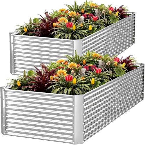 SogesPower 2 Pack Metal Raised Garden Beds for Vegetables,6 x 2 x 1 Reinforced Galvanized Steel Raised Boxes with Baking Varnish,Planter Box Bed for Growing Vegetables,Flowers,Herbs,Silver