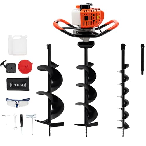 YUNLAIGOTOP 52CC Post Hole Digger 2-Stroke Gas Powered Earth Auger Heavy Duty Post Hole Auger with 4"/6"/8" Bits+Extention Rod, Borer Fence Ground Machine Auger Drilling Rig for Garden, Farm, Planting