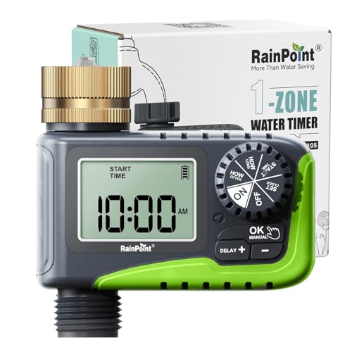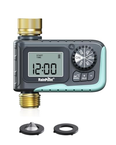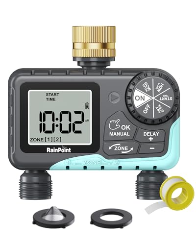 RAINPOINT Water Timer for Garden Hose - Sprinkler Timer with Brass Swivel - Rain Delay/Manual Watering/Automatic Irrigation Controller System Hose Timer Programmable Faucet Timer for Yard, 2 Outlet
