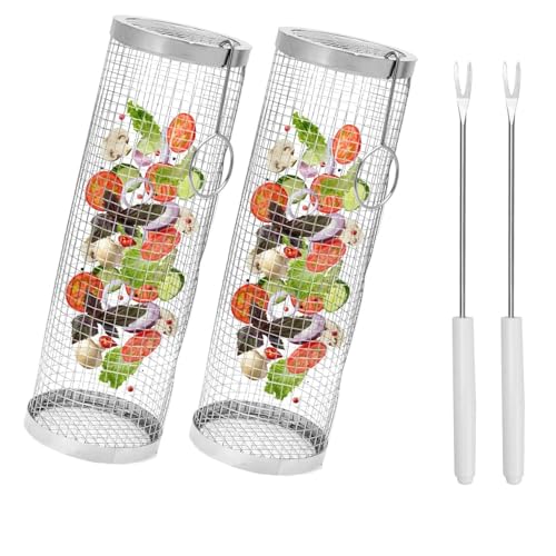 SHIZZO Grill Basket Value Set, Barbecue BBQ Grilling Basket , Stainless Steel Large Folding Grilling baskets With Handle, Portable Outdoor Camping BBQ Rack for Fish, Shrimp, Vegetables, Barbeque Griller Cooking Accessories, Gift, Gifts for father, dad, husband