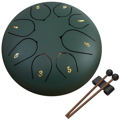 CAHAYA Steel Tongue Drum 12-Inch: 13 Notes Percussion Hand Drum with Music Score Drum Mallets Finger Paddles and Carry Bag for Meditation Entertainment Musical Education Gift Sage Green CY00374-1