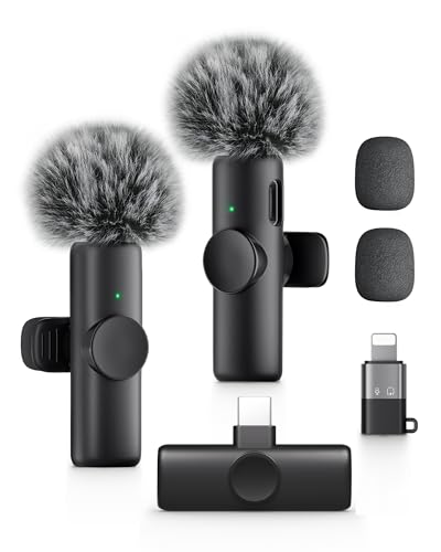 Wireless Microphone for iPhone/iPad/Android Phone, RICCHI 2 Pack Mini Microphone with Noise Cancelling & LED Display, Lavalier Microphones Clip on Lapel Mic for Video Recording, Vlog, Podcast, TikTok