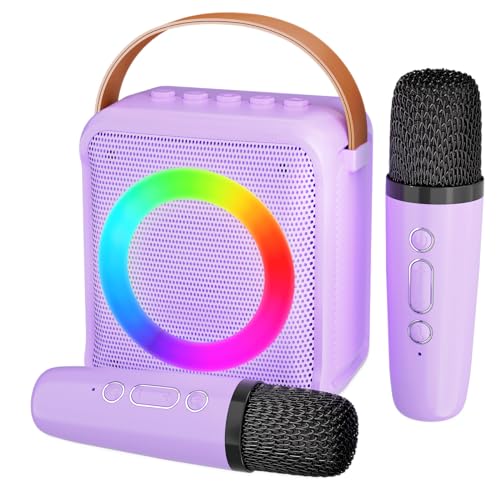 IndeCool Kids Bluetooth Karaoke Speaker with 2 Microphones, Wireless Rechargeable Portable Karaoke Machine Speaker Music MP3 Player for Kids Adult Party Gift (Pink)