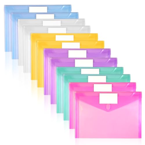 A4 Plastic Wallets Folder - 12Pcs Clear Document Folders Transparent Filing Envelopes Waterproof Plastic Envelopes File Holder Filing Document Poly Envelope for A4 Letter Paper Size (Clear)