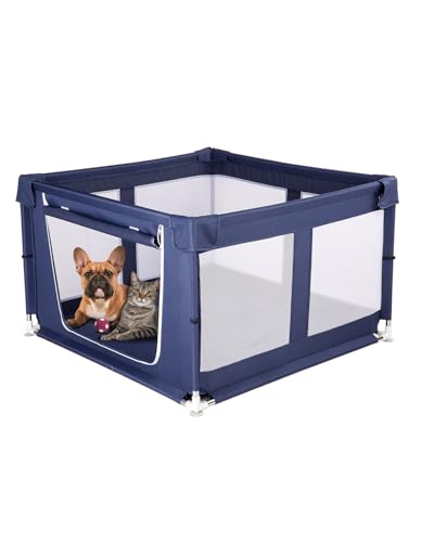 PETSFIT Dog Play Pen,36" Dia Dog Playpen Indoor/Outdoor, Pet Playpen for Cats Puppies&Small Animals-Removable Zipper Mesh Top Cover& Leakproof Bottom