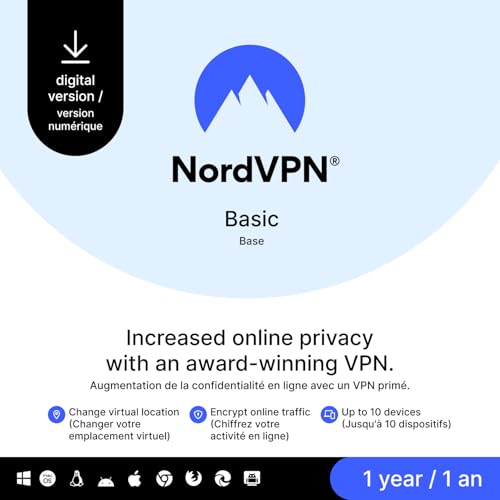 NordVPN Standard - 1-Year VPN & Cybersecurity Software Subscription for 6 Devices - Block Malware, Malicious Links & Ads, Protect Personal Information [Physical Box]