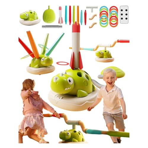 3 in 1 Children's Sports Set,3-in-1 Outdoor Toys for Kids 3+,Dinosaur Multiple Games Sports Toy,Musical Jump,Toss Rings Game Toys,Stomping Launch Rocket Launcher,Outside Toy with Remote Control