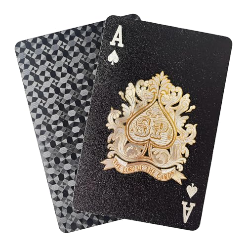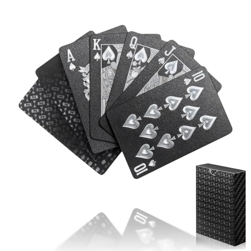 Waterproof Playing Cards, Plastic Playing Cards, Deck of Cards, Gift Poker Cards, Black Diamond Poker Deck, Luxury Cool Black Foil Poker Playing Cards,Use for Party and Game