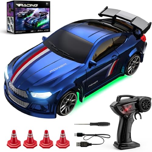 Remote Control Car RC Drift Car 2.4GHz 1:24 Scale 4WD 15KM/H High Speed Model Vehicle with LED Lights Drifting Tire Racing Sport Toy Car for Adults Boys Girls Kids Gift 2Pcs Rechargeable Batteries