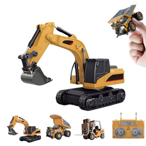 RC Excavator 1/20 2.4GHz 11CH RC Construction Truck Engineering Vehicles Educational Toys for Kids with Light Music QINQUAN